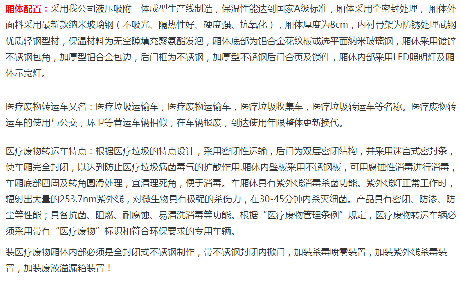 所属型号 医疗废物转运车
