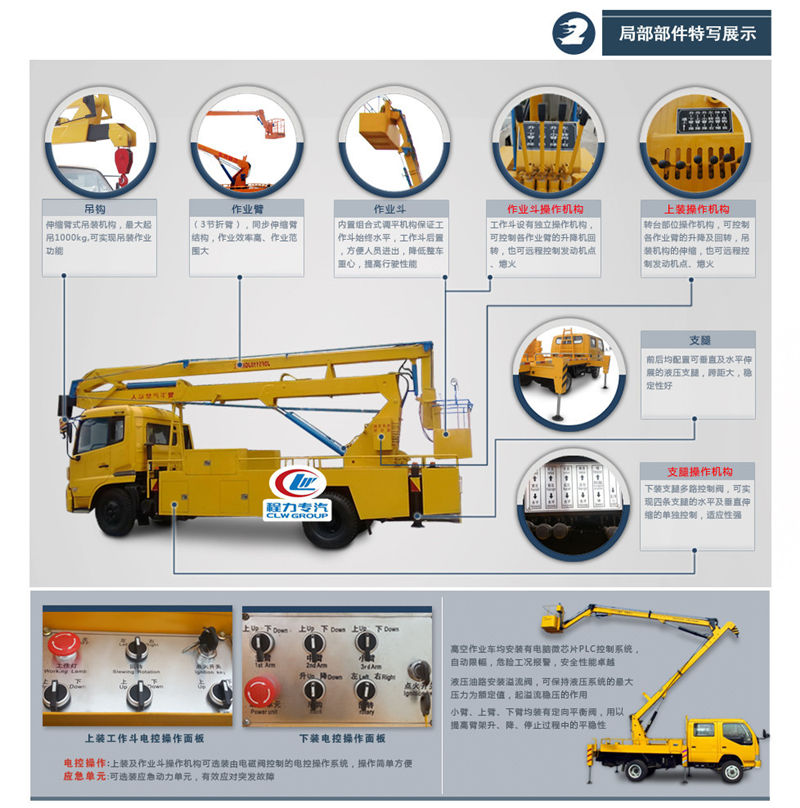 | 整车备注: | 该车前伸为800mm。选装二节工作臂时,作业高度为12米; 选装三节工作臂时,作业高度为14米和16米。防护材料:Q23**碳钢,连接方式:左右侧面及后下部防护均采用焊接连接,后部防护断面尺寸(mm):170×50,后部防护离地高度(mm):350。ABS系统型号:APG3550500A,ABS系统生产厂家:浙江亚太机电股份有限公司。该车可选装带电控操作箱。专用装置:吊臂,主要用于高空作业,进行维修、安装、清洗、摄影、造船、化工、电力、剪枝、更换路灯及其他工程抢修作业。随底盘选装驾驶室。 |